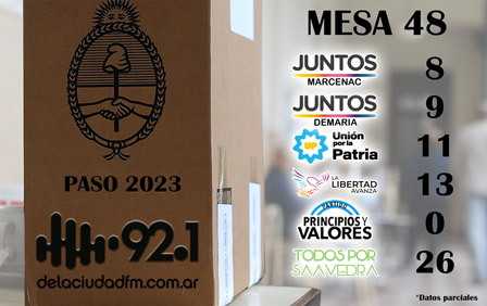 Resultados Parciales - Mesa 48 el 13 Agosto 2023. Publicado en Política Datos provisorios y parciales del partido de Saavedra. < Anterior Siguiente >