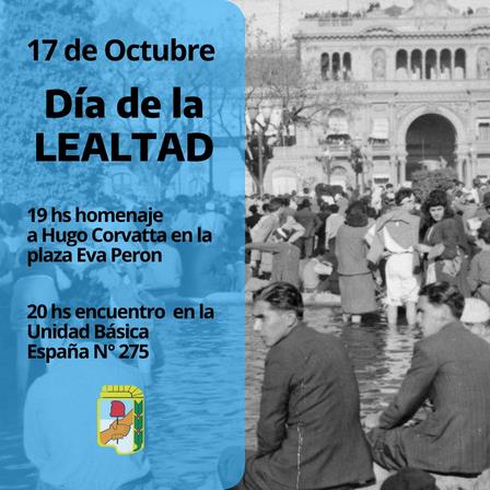 El Día de la Lealtad, este 17 de octubre, a las 19.00 horas, tendrá lugar el acto en el espacio público ubicado en calle Sarmiento de la ciudad de Pigüé.
