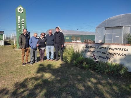Junto al Intendente Martin Randazzo recorrimos las instalaciones, plantaciones y viveros del predio municipal". Luego agregan "estuvimos presentes en el Centro Educativo Puente Innova, donde participamos de una capacitación organizada por la UPSO de esa localidad sobre Aspectos legales y sociales del cannabis medicinal”.
