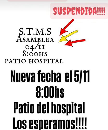 La asamblea, para discutir diversos reclamos referidos al Área de Salud, se hará el martes, 5 de noviembre, a partir de las 8.00 horas.