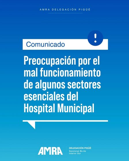 Allí dicen "desde AMRA Delegación Pigüé, queremos trasmitirle a la población nuestra preocupación por el mal funcionamiento de algunos sectores esenciales de nuestro Hospital.
