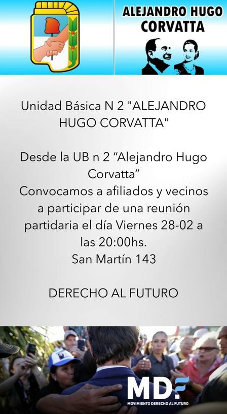 El viernes 28, a las 20.00 horas, convocan a una nueva reunión en la Unidad Básica Alejandro Hugo Corvatta.