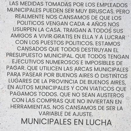 El Gremio de los Trabajadores Municipales expresó 'estamos cansados que todos destruyan el Presupuesto Municipal'