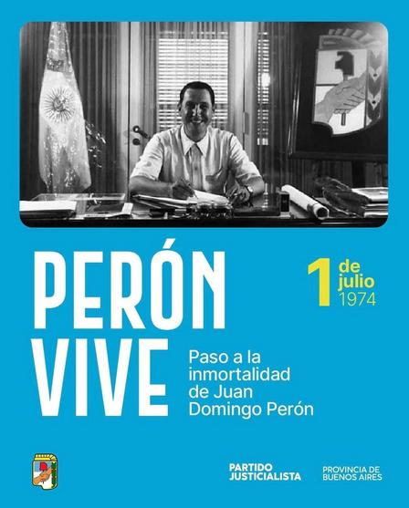 El 1 de julio de 1.974 es el día del fallecimiento de Juan Domingo Perón, de allí que, el PJ local recuerda al Presidente de la Nación que fundó el Movimiento Justicialista.