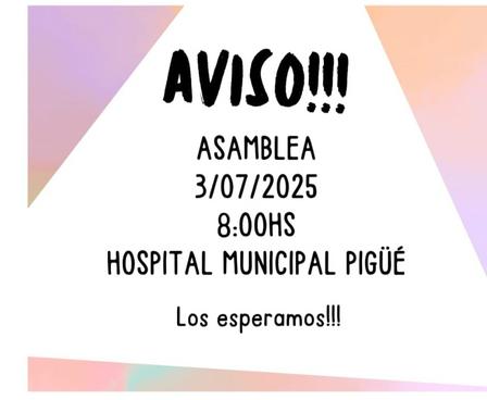 A partir de las 8.00 horas, en el Hospital Pigüé, se llevará a cabo el encuentro de los operarios que vienen impulsando una nueva jornada de paro.