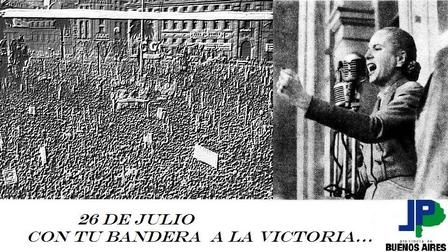 Por estas horas se dio a conocer el recordatorio de la Juventud Peronista del Distrito de Saavedra en adhesión a a un nuevo aniversario del paso a la inmortalidad de Eva Duarte de Perón.