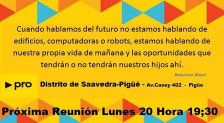 La reunión del PRO, en Pigüé, tendrá lugar en su céntrico local de Avenida Casey 402.