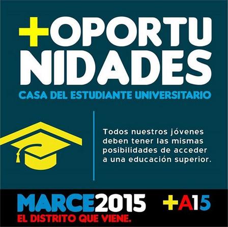 En el portal de Marcela Guido se afirma "vamos a crear las residencias estudiantiles en las ciudades universitarias, para todos los jóvenes del distrito tengan las mismas posibilidades de acceder a un estudio superior".