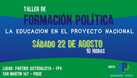 Este taller tendrá lugar en la Unidad Básica del Partido Justicialista ubicada en calle San Martín 147 de Pigüé.