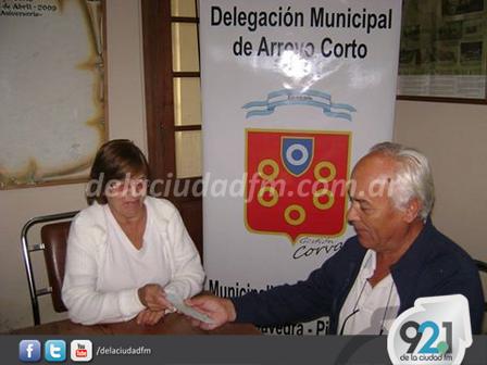 El Delegado Municipal hizo entrega de un subsidio a la Comisión de Festejos, Aniversario de Arroyo Corto, en este caso lo recibieron Graciela Rodriguez Araujo y María del Pilar Ruppel.