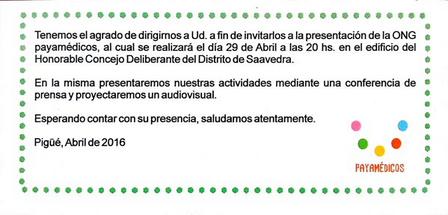 El viernes, desde las 20.00 horas, en el edificio del Honorable Concejo Deliberante, se hará la presentación de la ONG Payamédicos.