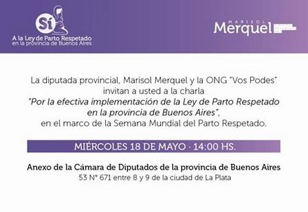 Esta tarde la legisladora Marisol Merquel, junto a la ONG Vos Podés, estará al frente de una charla titulada 'Por la efectiva implementación de la Ley de Parto Respetado'.