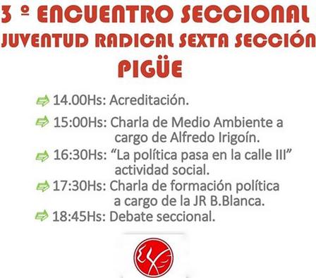 Los días 28 y 29 de mayo, en Pigüé, se hará el Tercer Encuentro Seccional de la Juventud Radical de la Sexta Sección Electoral.