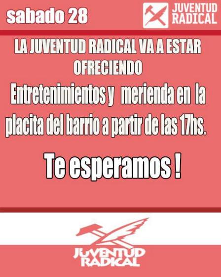 La Juventud Radical hará actividades en la Plaza del Barrio Jardín