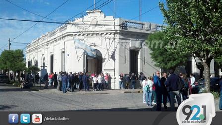 Los trabajadores desarrollan una presentación frente a al Comuna.