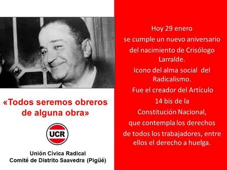 La UCR local recordó a quien fuera impulsor del artículo 14 de la Constitución Nacional.