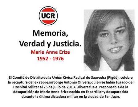 El radicalismo, con un parte de prensa, celebró la detención del represor acusado de la desaparición de la joven de Espartillar.