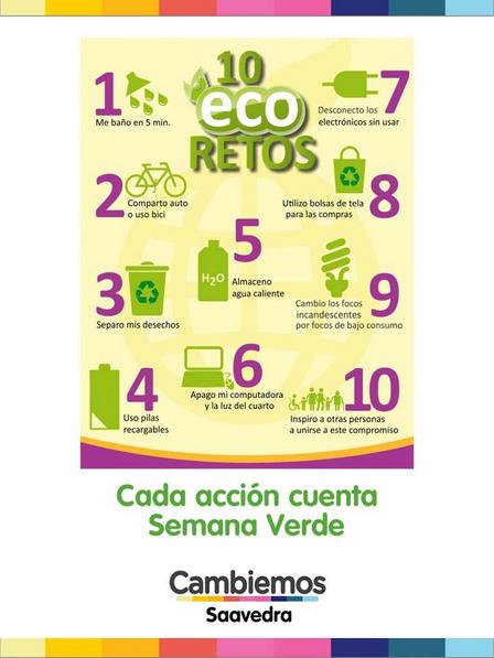 El mensaje dice 'Cada Acción Cuenta, cuidar el medio ambiente es necesario y está al alcance de todos, por eso te recomendamos 10 pasos a seguir'.
