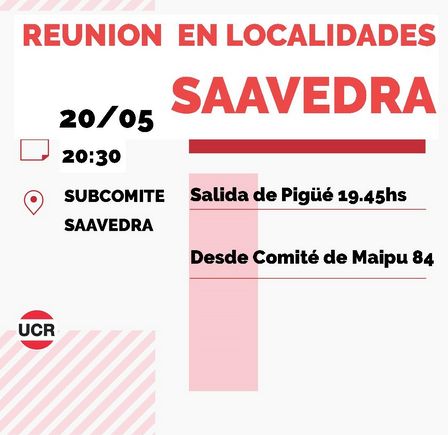 El lunes próximo, a las 20.30 horas, tendrá lugar un encuentro abierto a afiliados y simpatizantes en el Sub Comité de Saavedra.
