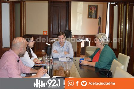El Intendente Municipal Gustavo Notararigo, junto al responsable de la oficina de Ambiente, Lic. Juan Pablo Miracca y la Asesora Legal, Dra. Florencia Bros se reunieron con Laura Begaries.