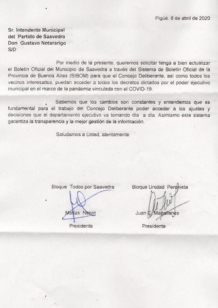 Concejales de Unidad Peronista y Todos por Saavedra pidieron actualizar el Boletín Oficial Municipal