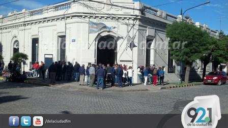 Los operarios de la Comuna se movilizaron durante el día de hoy, por la mañana, y ahora esperan frente al Palacio Municipal.