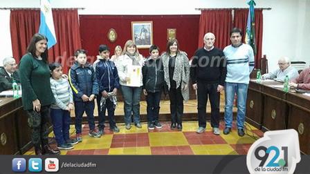 Alumnos y docentes de la Escuela Pública Número 14 asistieron al recinto para recibir el acompañamiento de los ediles hacia su trabajo de restauración de bicicletas.