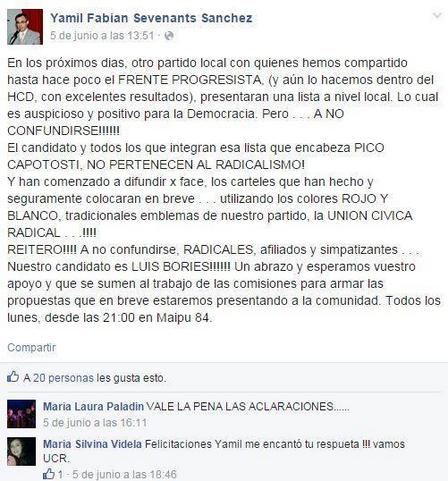 En FM de la Ciudad Agustina Barrera indicó "queremos ser plurales, poder respetar la visión del otro, de poder llegar a consensos, y de establecer una forma de consenso más participativa y dialoguista. Vemos que hay muchos candidatos que están presentando a sus Secretarios y a sus posibles funcionarios entendemos desde nuestro punto de vista que el que llega al Gobierno tiene que gobernar la Comuna para la gente".
