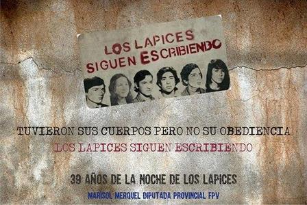 El mensaje emitido desde el Despacho de la Diputada Provincial del Frente para la Victoria dice 'Los Lápices siguen escribiendo. Tuvieron sus cuerpos pero no su obediencia'.