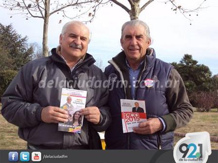 En la localidad de Goyena intercambiaron folletos, dialogaron unos minutos, y se tomaron una foto los candidatos a Intendente Carlos Grigoriades y Jorge Capotosti.