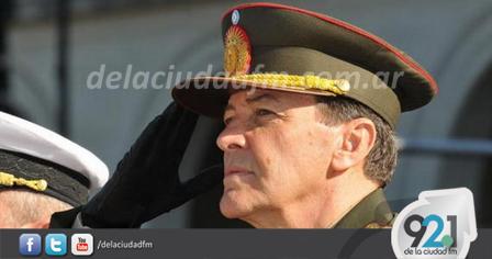 El Teniente General César Milani arribó vía aérea, esta mañana, a Bahía Blanca, para ser luego trasladado a Pigüé, y recorrer la Guarnición Militar que tiene acceso por la Avenida Luis María Campos.