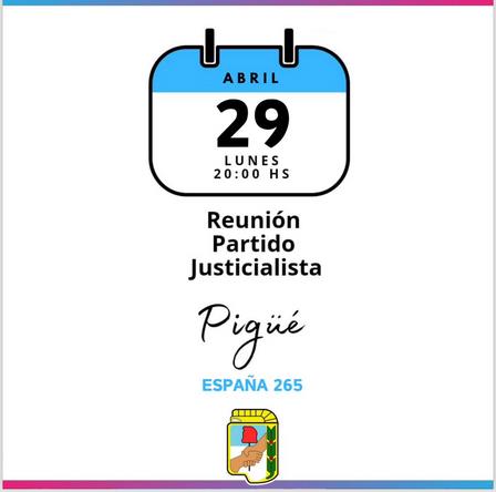 El Partido Justicialista hará una reunión a las 20.00 horas del día de hoy, lunes, 29 de abril de 2024.