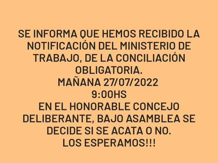 Allí estarán decidiendo los pasos a seguir tras el aviso de la conciliación obligatoria emanado desde la sede regional del Ministerio de Trabajo
