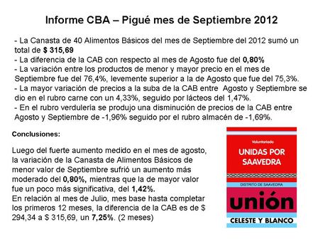 - La Canasta de 40 Alimentos Básicos del mes de Septiembre del 2012 sumó un total de $ 315,69