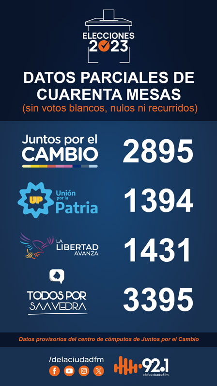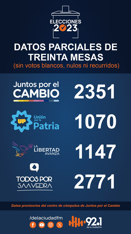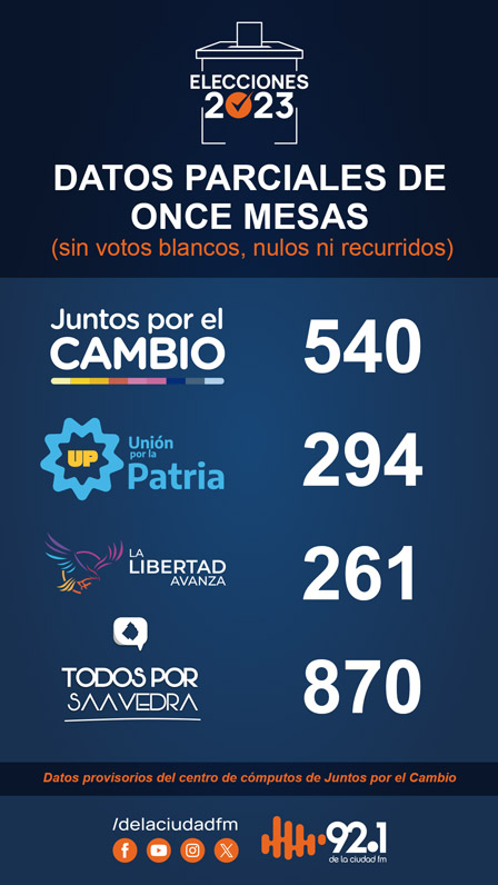 Datos parciales de once mesas escrutadas desde el centro de cómputos de Juntos por el Cambio.