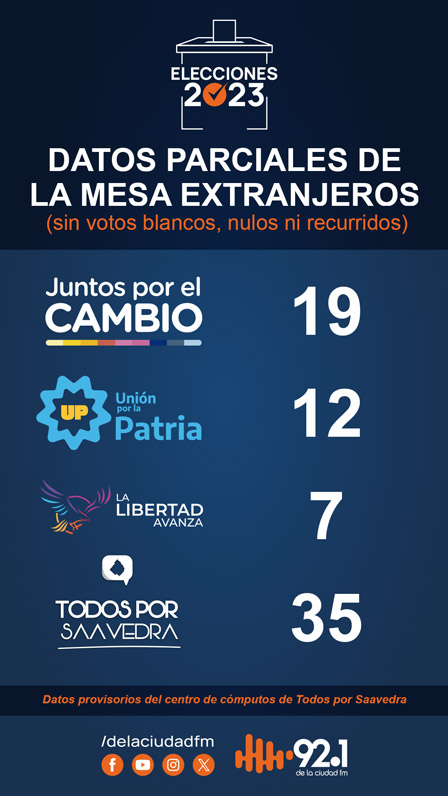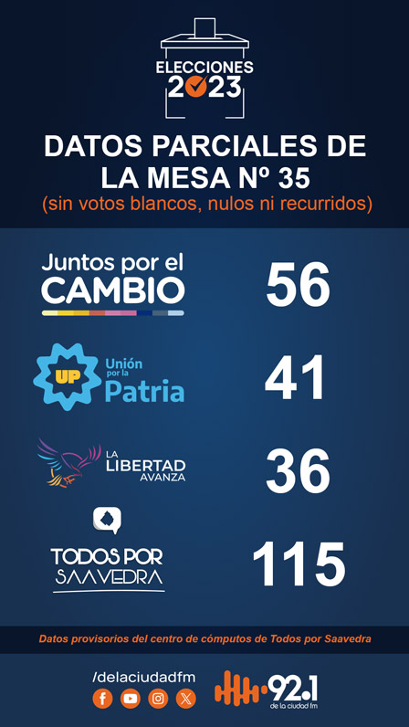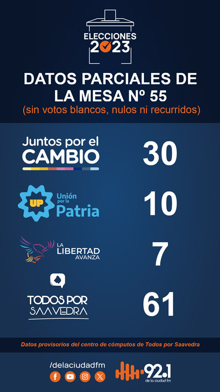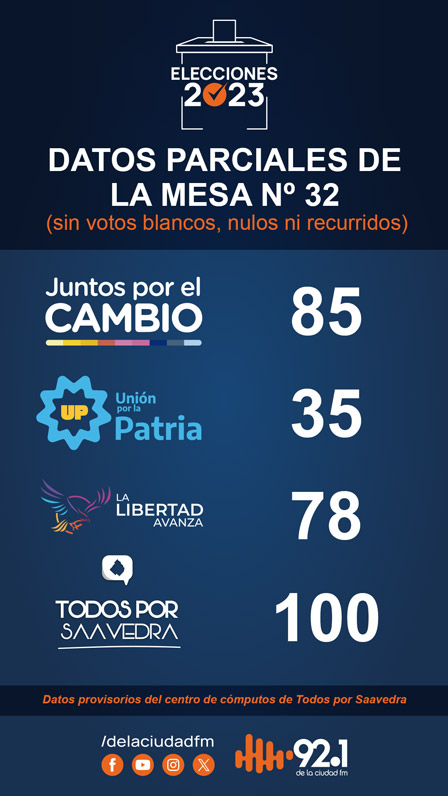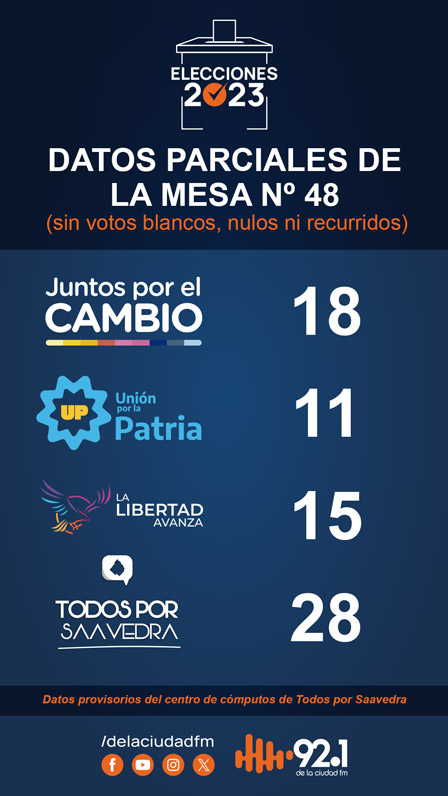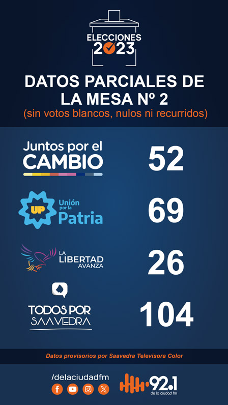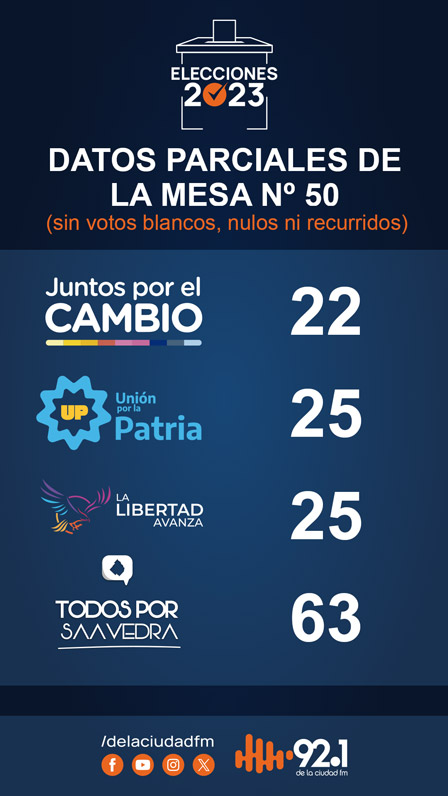 Los primeros datos provisorios del recuento de votos,Mesa 50 de la localidad de Arroyo Corto.