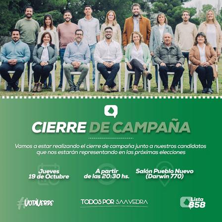 Los candidatos de la Lista 858 del vecinalismo realizarán el cierre de campaña previo a las elecciones del próximo domingo.