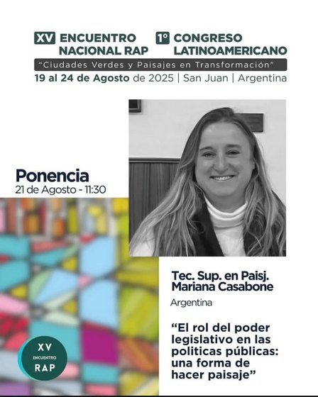 La concejal radical Mariana Casabone está participando, representando al Honorable Concejo Deliberante, en el V Encuentro Nacional de la Red Argentina del Paisaje y el Primer Congreso Latinoamericano llamado 'Ciudades verdes y pasajes en transformación'.