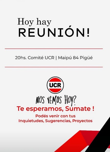 Desde las 20.00 horas, hoy, lunes, 7 de julio de 2025, se reunirá el radicalismo del Partido de Saavedra.