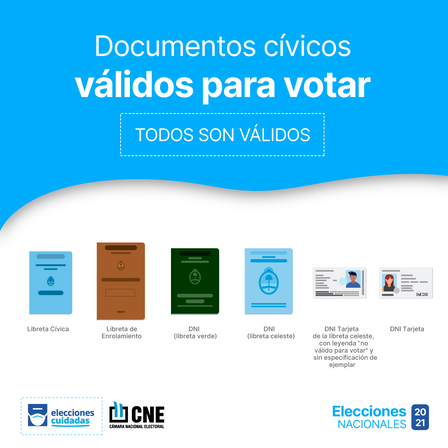 Se trata de la Libreta Cívica, la Libreta de Enrolamiento, el DNI Libreta Verde, el DNI Libreta Celeste, y el DNI tarjeta están en la lista de la Cámara Nacional Electoral.