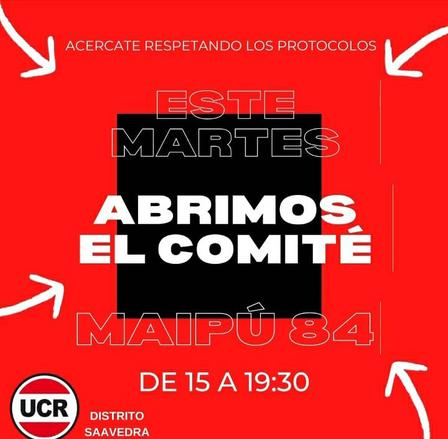El espacio que la agrupación política posee en Maipú 84 de Pigüé estará abierto al público desde las 15.00 horas.