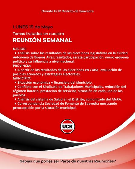 Se realizará hoy miércoles, 21 de mayo, a las 11:30 horas, en el Punto Digital de Pigüé, ubicado en Avenida Alsina y Avenida Casey. En la misma se abordarán temas como la situación económica y financiera de la Municipalidad y el decreto del cambio de régimen horario”.