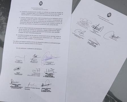 A través de un pedido de acceso a la información pública presentando el dia de hoy al Ministerio de Salud, los legisladores de la oposición denuncian que se están favorenciendo a distritos amigos a los que se les hace una mayor entrega de vacunas, al tiempo que acusan al oficialismo de “montar una logistica paralela” que tiene a la organización kirchnerista La Campora como eje del manejo “clientelar” de la Sputnik V.