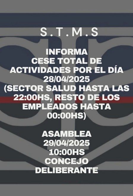 Para mañana, miércoles, a las 12.15 horas, los trabajadores adheridos al gremio están convocando a reunirse en Ciudad de Rodez esquina Humberto Primo de Pigüé.