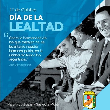 En las próximas elecciones que se avecinan el justicialismo quiere continuar aquí con el camino iniciado en el año 2.011, trabajando para que nuestros vecinos vivan mejor. Porque como dijo Evita, en estos días ser peronista es un deber. ¡Feliz día de la Lealtad!”.