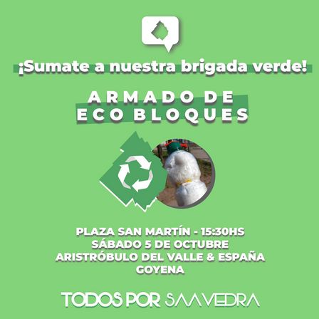 Este sábado, luego de las 15.30 horas, en la Plaza Aristóbulo del Valle, se hará una jornada para armar eco bloques.